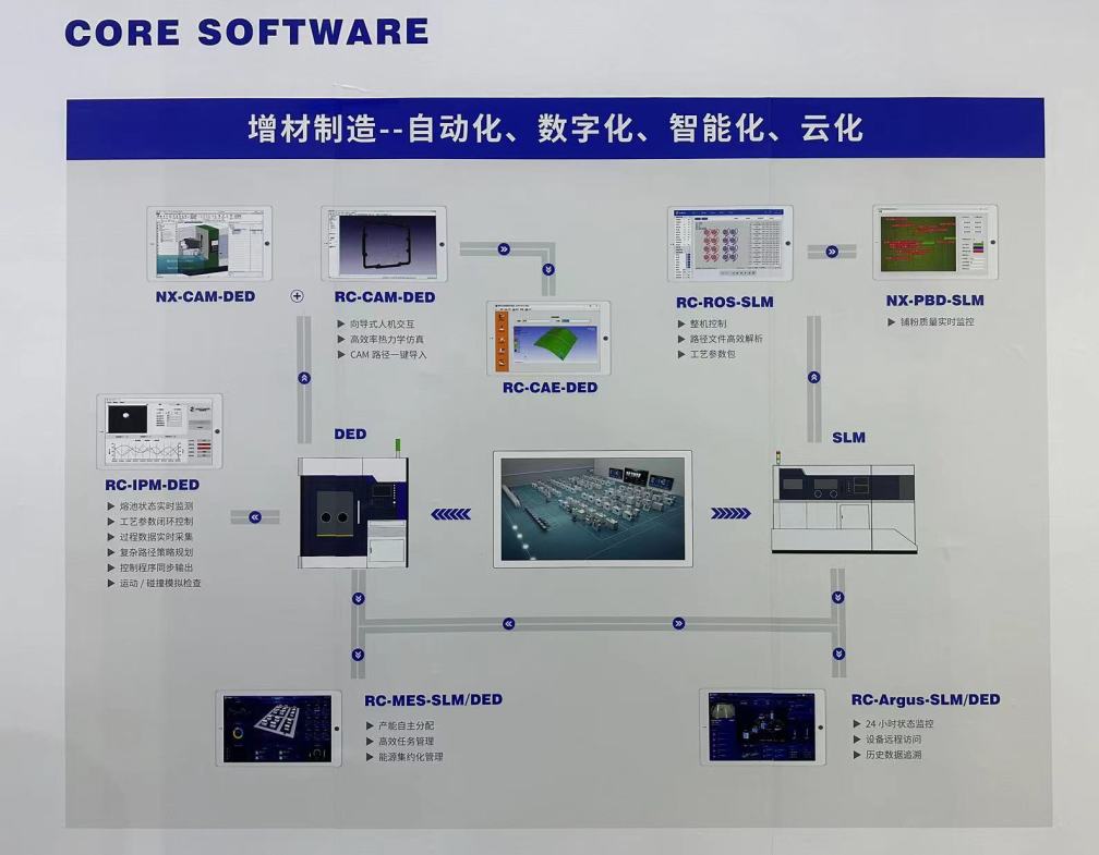 除了工藝展品之外,煜宸展位還展出了“軟件全家桶”,一系列智能化控制軟件,為實現金屬增材制造過程“智能識別、預置處理、遠程控制、人工輔助”的智能化工廠級品質控制模式提供必要的保障。
