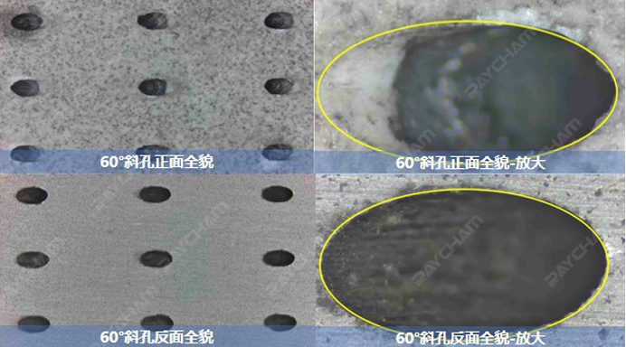 60°斜孔-帶涂層鎳基高溫合金加工結(jié)果觀察