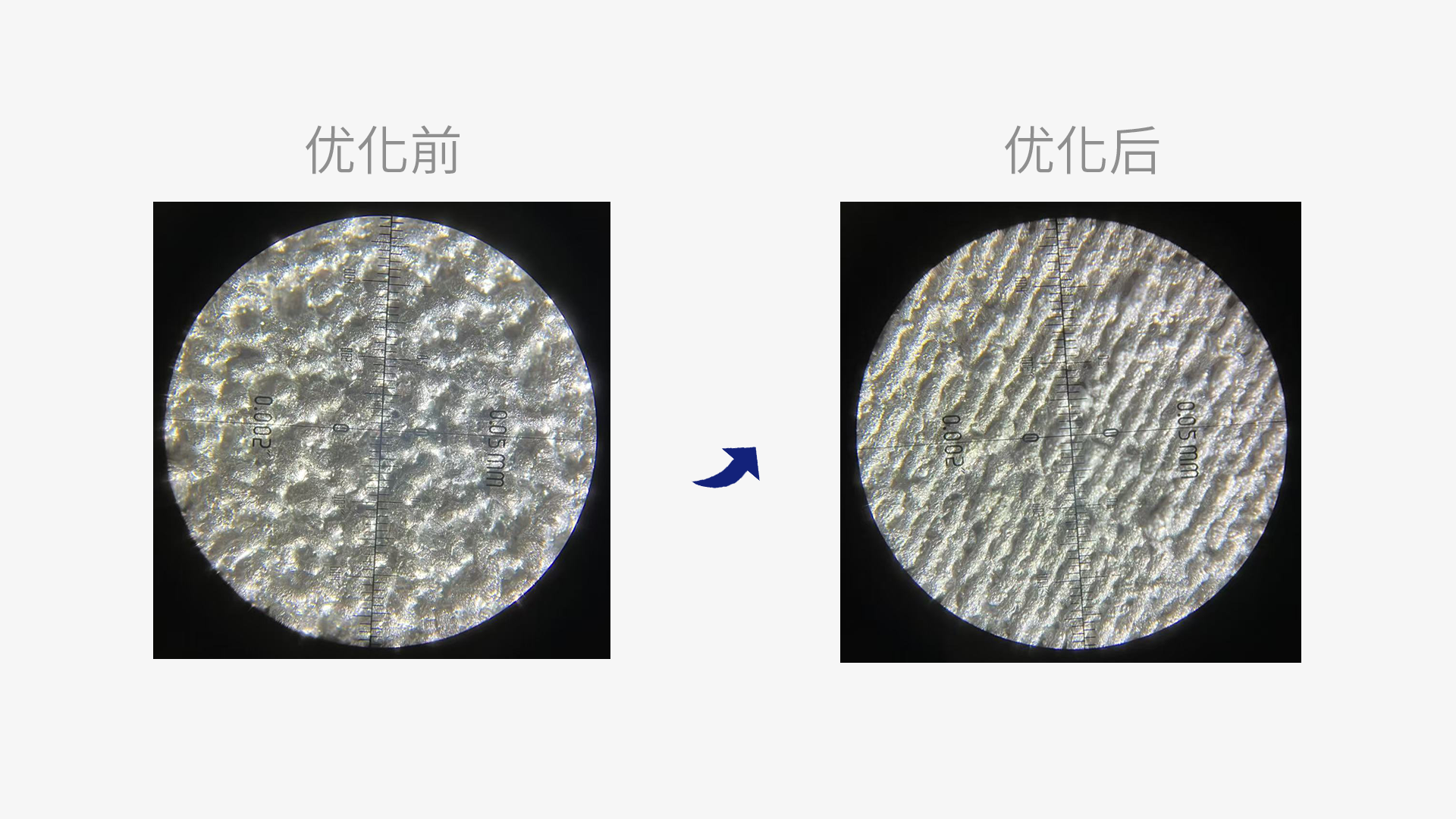 *優(yōu)化后0.2mm級(jí)微花紋清晰不沾粉