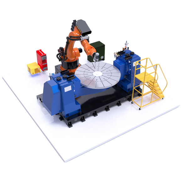 6軸重載機器人+2軸變位機機器人柔性激光/電弧金屬增減材制造裝備解決方案。
