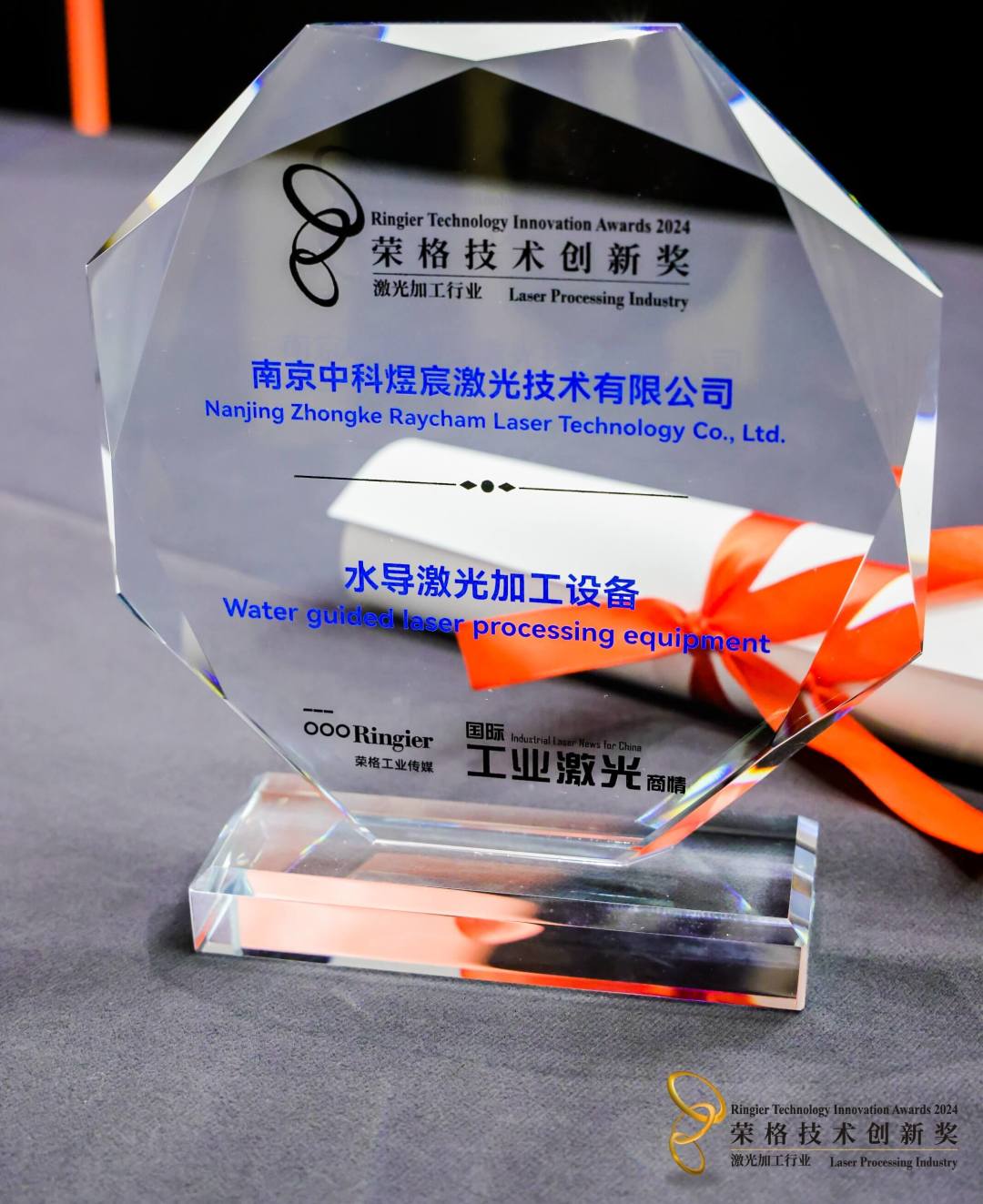 5月15日,中科煜宸水導激光加工設備榮獲“2024激光加工行業——榮格技術創新獎”。